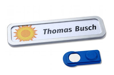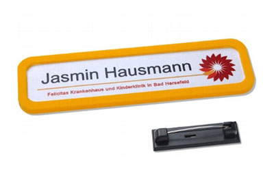 Portanome personalizzabile in plastica con 18 differenti colori a scelta.