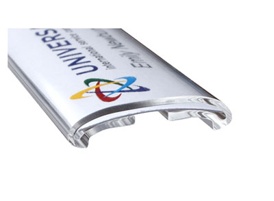 Modello classico di targhetta portanome, si adatta a tutti i tipi di abbigliamento.