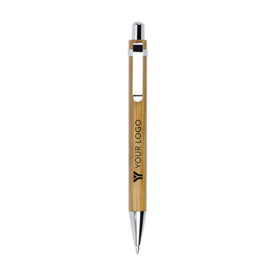 Penna a sfera in Bambù ecologico, meccanismo a scatto, pulsante clip e puntale in metallo.
