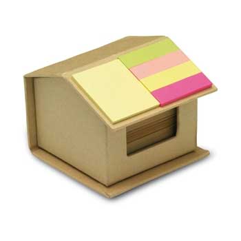 Set memo a forma di casetta con blocco in carta riciclata 100 fogli, memo adesivi colorati vari formati.