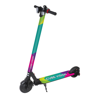 Ha un motore da 300 W con una velocità massima fino a 20 km con autonomia fino a 12 km, la velocità e l’autonomia possono variare in base al peso del passeggero, al terreno, alla temperatura e allo stile di guida. Lo scooter è leggero, pesa solo 10 kg, e pieghevole per un facile trasporto. Supporta persone fino a 100 kg. Questo scooter è comodissimo in città per arrivare velocemente a destinazione senza usare i mezzi pubblici. Può essere personalizzato sulla pedana, sul telaio e con un rivestimento in quadricromia sul volante.