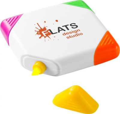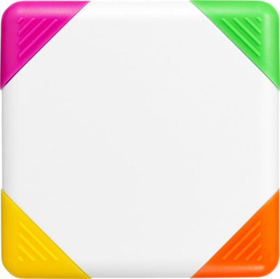Evidenziatore a forma di Quadrato con 4 evidenziatori con punte a scalpello e vivaci colori :