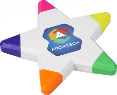 Evidenziatore a forma di Stella con 5 vivaci evidenziatori colorati :