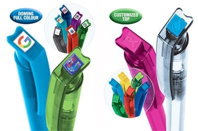 Il terminale con clip superiore colorato personalizzabile con resina DOM con il logo aziendale.
