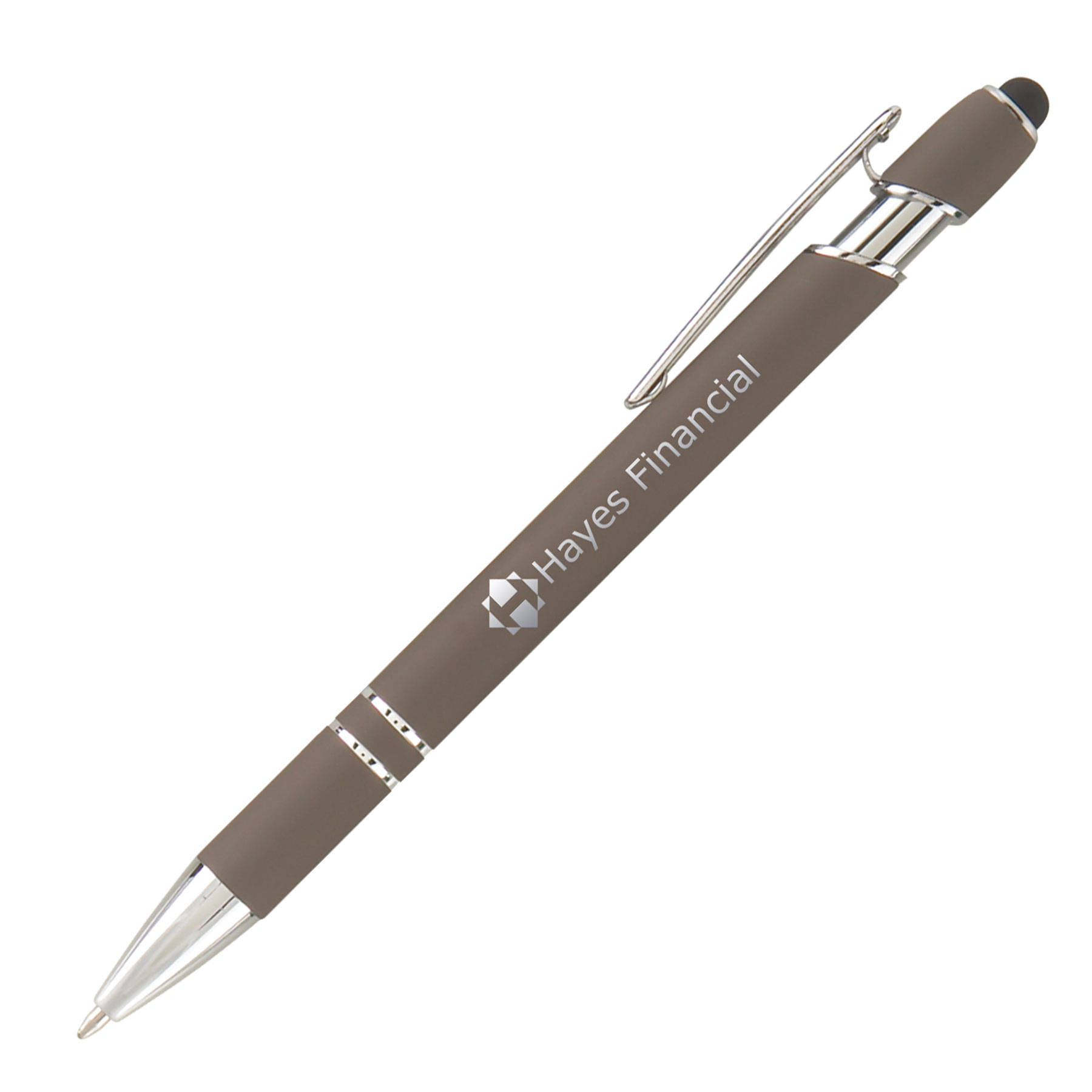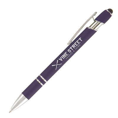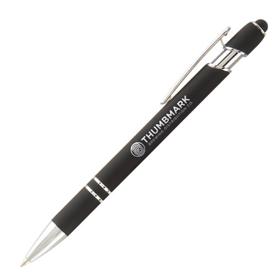 Penna sfera personalizzata, materiale in Alluminio con gommino capacitivo per schermi touch, corpo finitura in gomma in 13 colori a scelta,