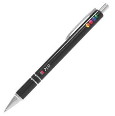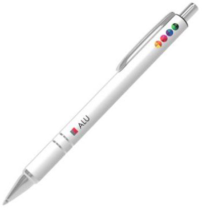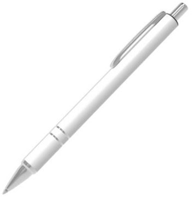 Penna sfera personalizzata, materiale in Alluminio colore corpo Bianco, Blu o Nero con clip e puntale in Metallo.