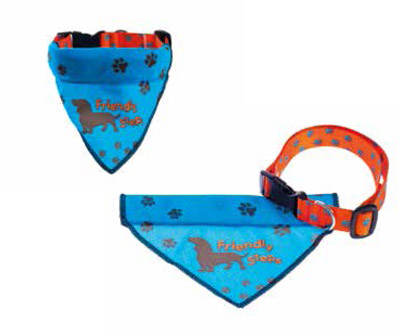 Collare cane regolabile in poliestere con bandana e fibbia.