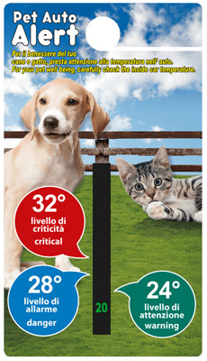 Pet Auto Alert è il termometro a cristalli liquidi che rileva, in pochi secondi, la temperatura interna dell’auto diventando quindi uno strumento indispensabile per allertare il “pericolo”.
