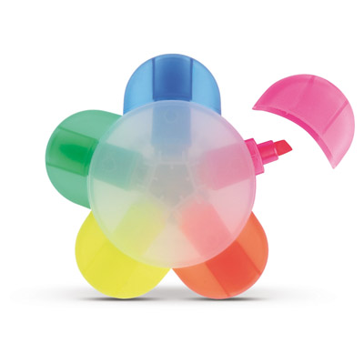 Evidenziatore in plastica ABS a forma fiore tondo con ampia area centrale per stampa digitale logo o doming