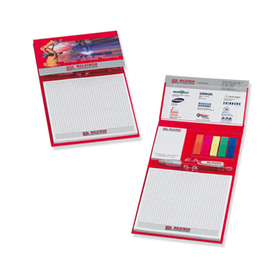 Blocco memo-stick 50 fogli con cover rigida, segnapagina e penna Briosa.