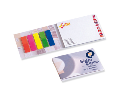 Blocco memo-stick 50 fogli con cover e segnapagina.