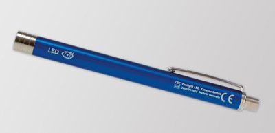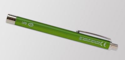 Fusto in metallo colorato con pulsante, clip e puntale-luce in metallo lucido