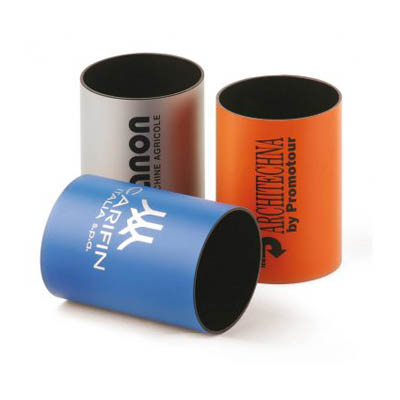 Bicchiere per penne realizzato in eco-pelle morbida esterno e anima in plastica rigida.