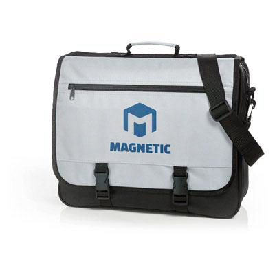 Borsa in tessuto poliestere 600D con zip, cinghia e dettagli colore nero.