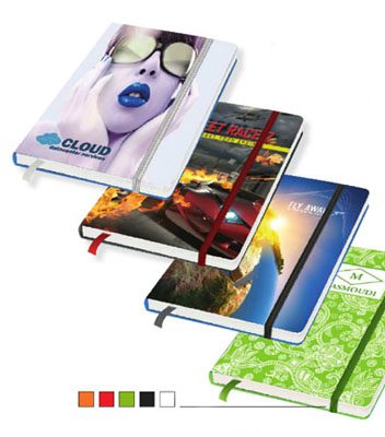 Il massimo della comunicazione brand con il taccuino per appunti personalizzato su tutta la superficie della cover.