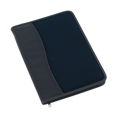 Portablocco formato A4 con cerniera di chiusura, scomparti e tasche interne per blocco in carta, cards, portapenna.