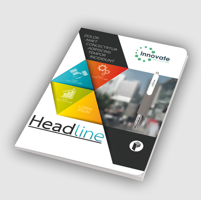 Cartellina personalizzata porta documenti per il formato A4 con 3 lembi, porta penna e penna personalizzata inclusa. La stampa è in quadricromia su lato esterno e plastificazione in macchina.