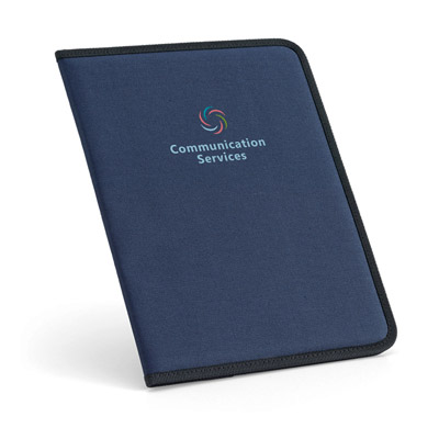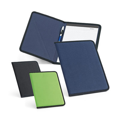 Portablocco formato A4 in tessuto 600D e portapenna (penna a sfera non inclusa).