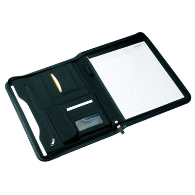 Portablocco formato A4 e A5 con cerniera di chiusura, scomparti e tasche interne per blocco in carta, cards, portapenna.