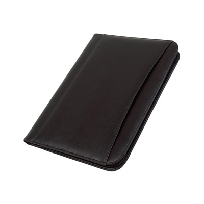 Portablocco formato A4 con cerniera di chiusura. Tasche interne per blocco, calcolatrice, cards, portapenna. Scomparto interno trasparente e n.1 scomparto con cerniera.
