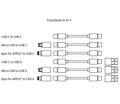 Adattatore cavo 6 in 1 con custodia organizer
