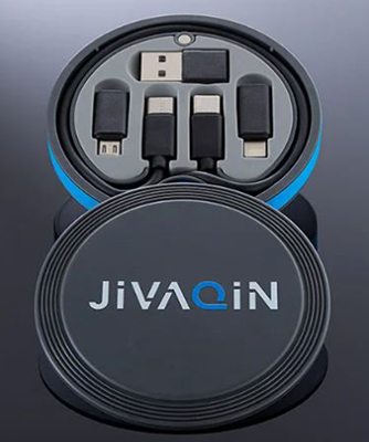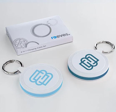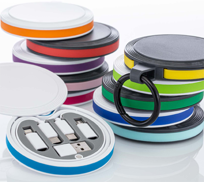 Contiene un cavo di ricarica e dati, oltre ad adattatori per sei funzioni : un cavo da 48 cm da USB Type-C a USB Type-C, un cavo a 8 pin per Apple®, un adattatore Micro USB e un adattatore USB-A. L’ampia copertura dell’alloggiamento in plastica ASB con chiusura magnetica offre molto spazio per la tua pubblicità individuale anche con stampa digitale.