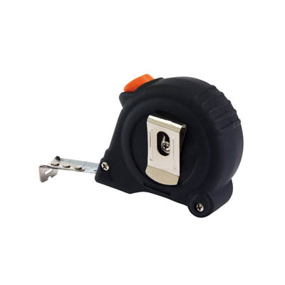 Flessometro gommato con nastro 3 metri oppure 5 metri colore bianco, pulsante di riavvolgimento automatico e funzione di blocco.