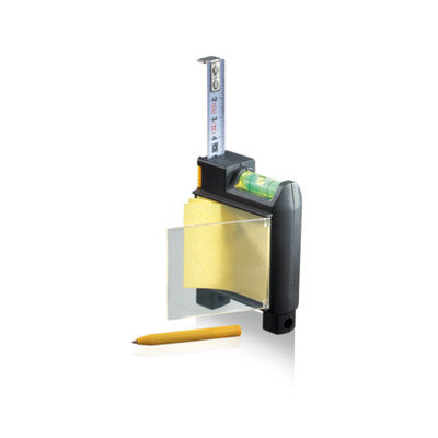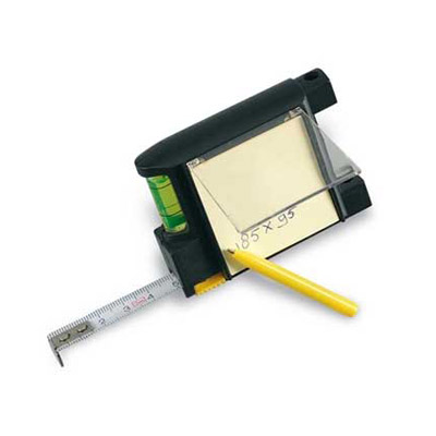 Flessometro in plastica con nastro 2 metri colore bianco, foglietti memo, penna a sfera e livella.