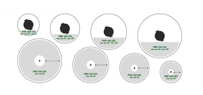 Area di stampa: mm 20×65, mm 34×100, mm 48×120, mm 65×160