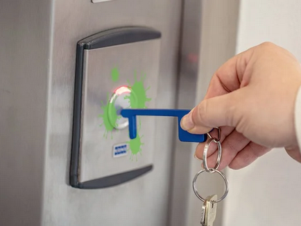 Se non vuoi toccare un oggetto o una superficie che viene usata frequentemente, usa semplicemente questo strumento. Il “My Key Distance” o il “My Caddy Distance” è un dispositivo ben progettato che può essere facilmente trasportato anche come portachiavi e viene utilizzato ogni volta che vuoi evitare un contatto diretto con una superficie. Aiuta ad aprire le porte, alla pressione dei pulsanti negli ascensori, aprire le porte nei tram o premere un campanello. Allo stesso tempo è un amico poco appariscente che quando non utilizzato decora le tue chiavi. Pertanto il “My Key Distance” o il “My Caddy Distance” è un classico risolutore di contatto che offre meravigliose possibilità di utilizzo come articolo promozionale.